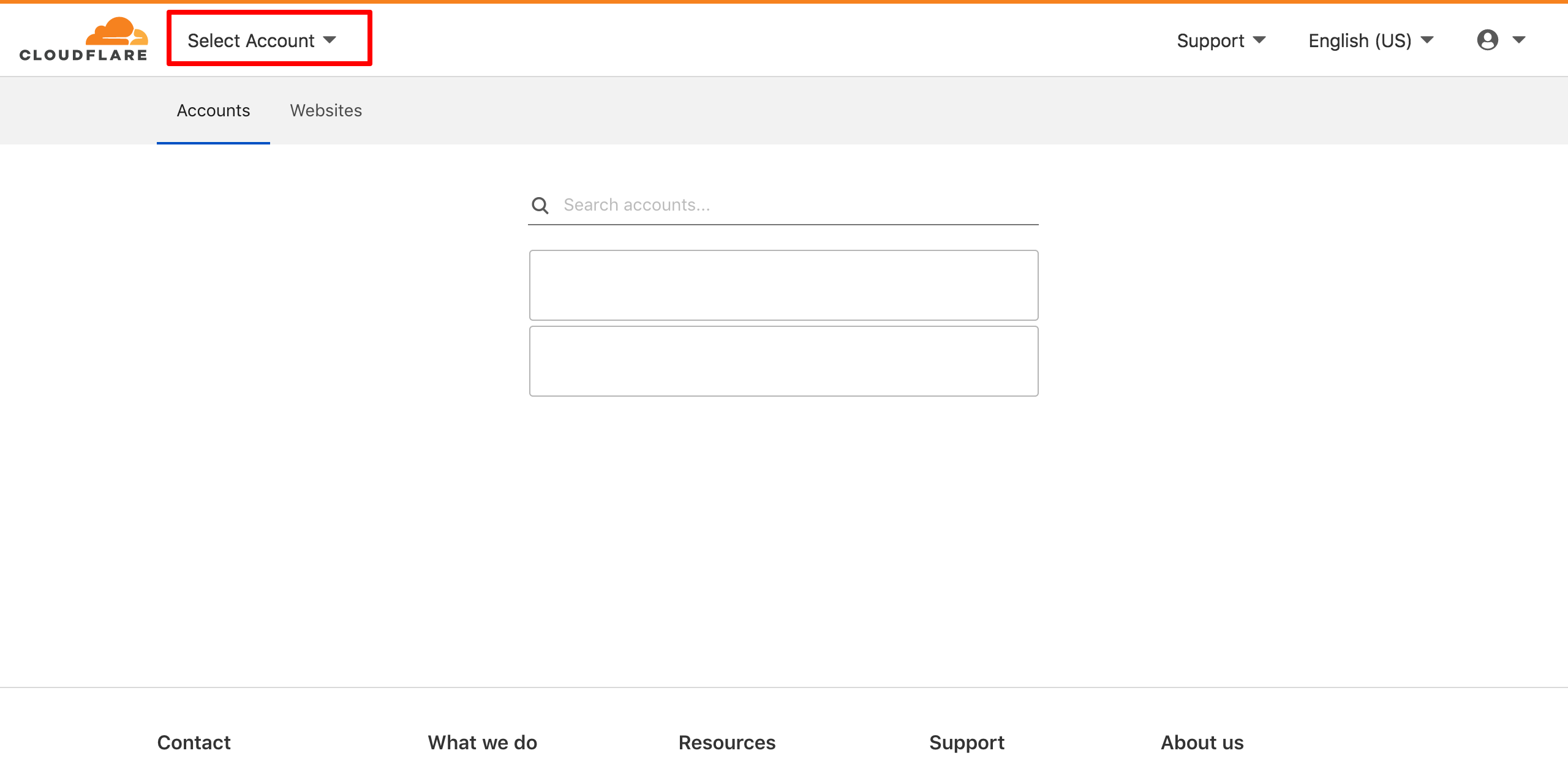 Click the appropriate Cloudflare account from the Home tab that shows a list of your sites.